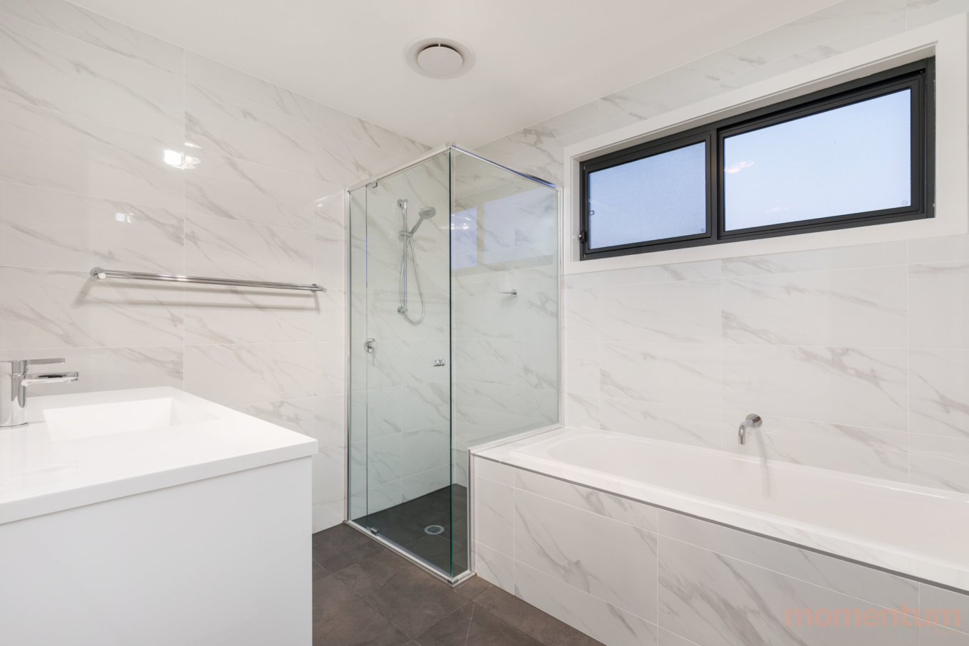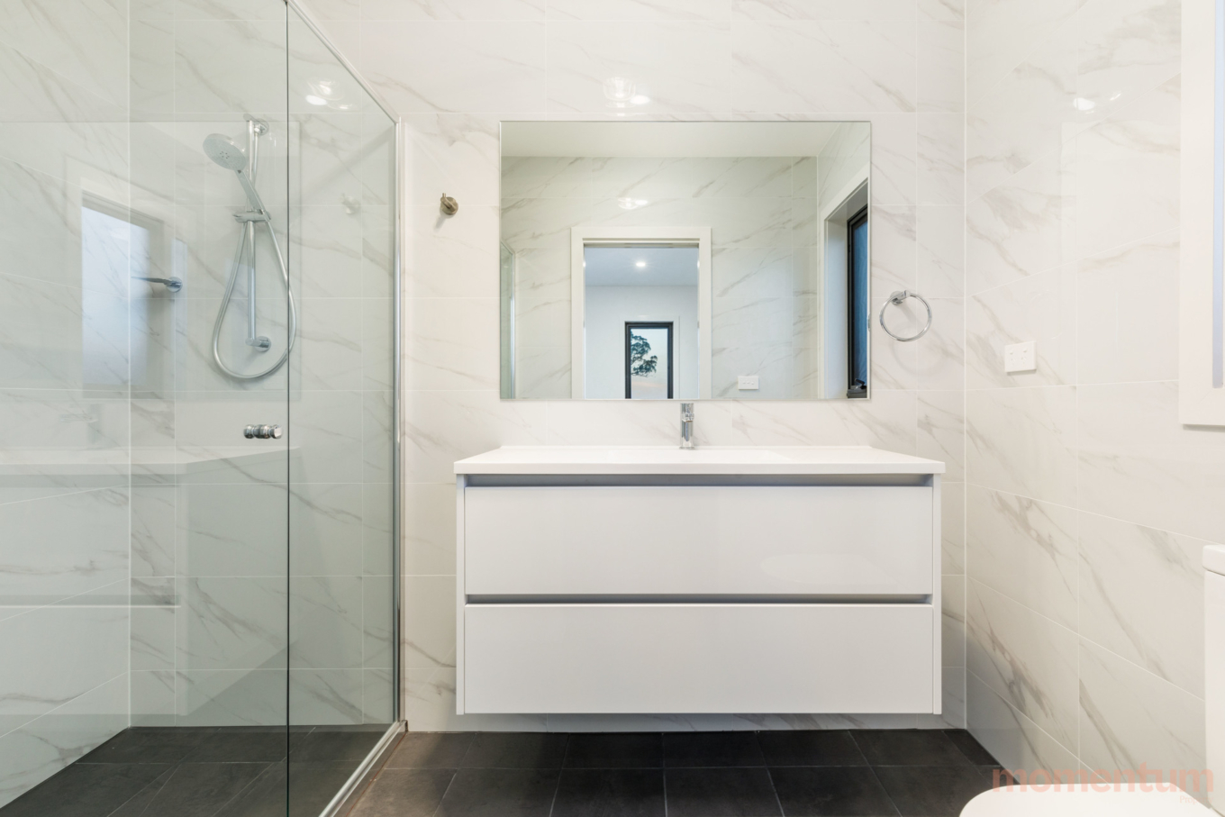 – Stylish bathrooms with floor-to-ceiling tiles, quality fixtures, and wall-mounted