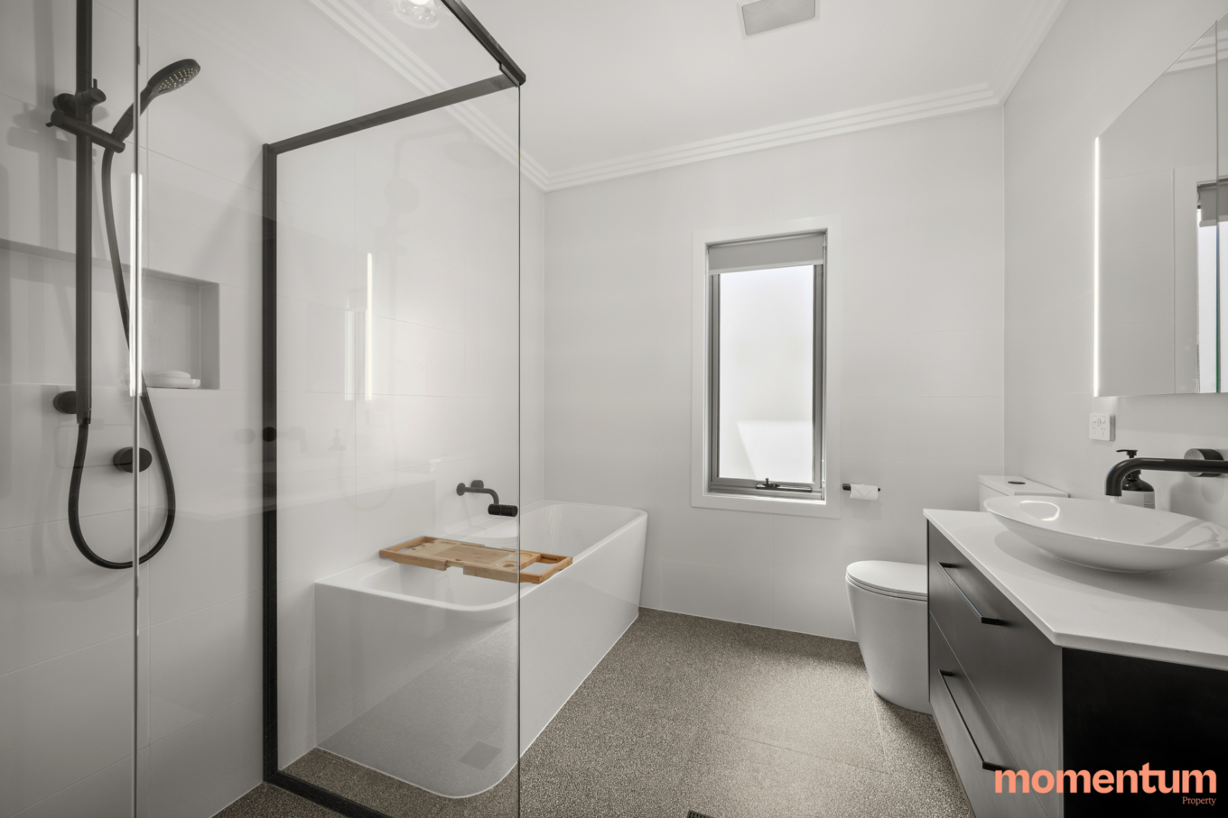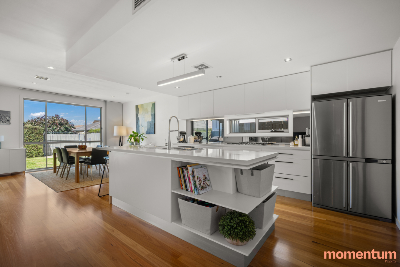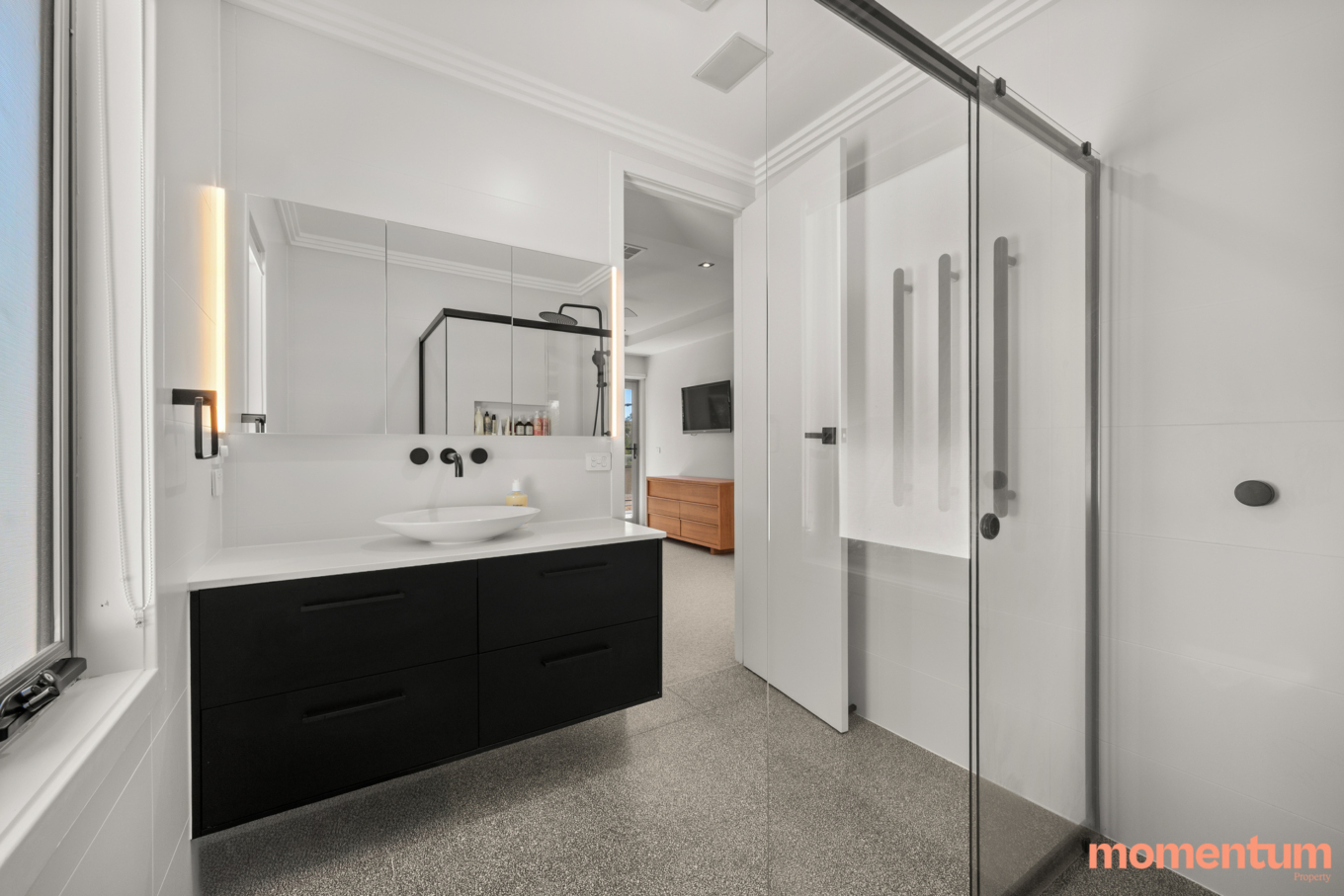 At the centre of the home, a light‑filled open‑plan kitchen, dining and living area forms a welcoming hub for everyday living and entertaining. The kitchen is well appointed with ample bench space, quality appliances, excellent storage and a walk‑in pantry, seamlessly connecting to both indoor and outdoor living zones. A separate living or media room adds further versatility, perfect for quiet relaxation or a children’s retreat.
