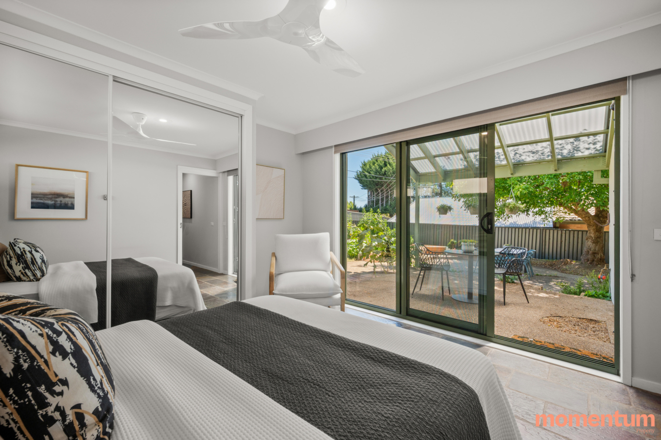 * Built-in mirrored wardrobes to bedrooms three and four – both with sliding door access to alfresco living areas