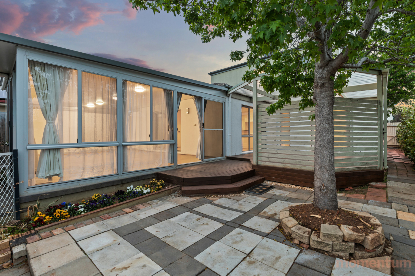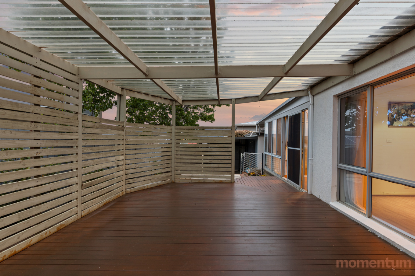 – Covered outdoor entertaining area and low-maintenance backyard