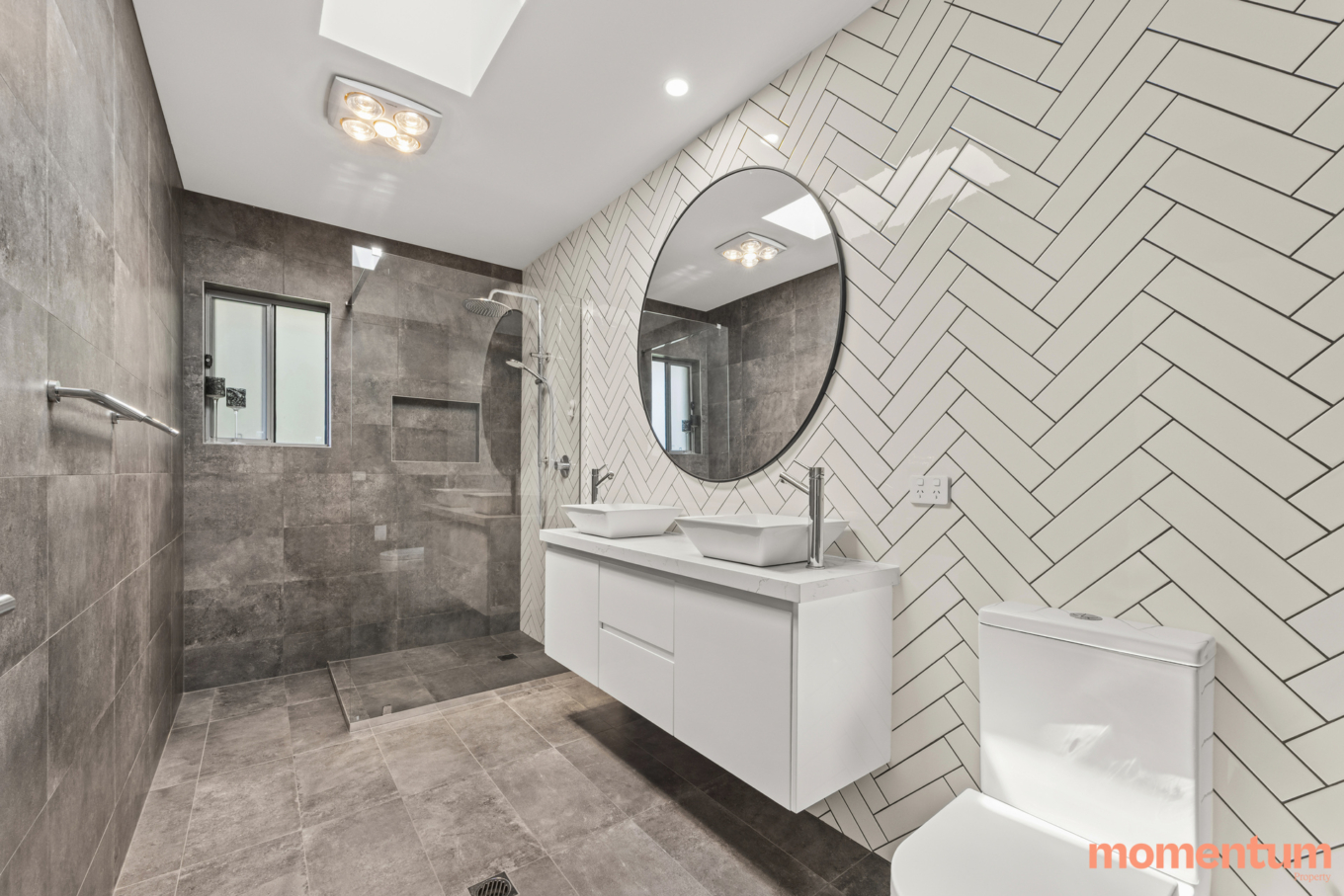 Accommodation is thoughtfully arranged, with the master suite privately positioned to the rear of the home. It includes a huge walk-in robe, stylish ensuite, and access to the backyard through large sliding doors creating a comfortable parents’ retreat. The additional bedrooms are well proportioned, including a guest bedroom with its own walk in robe, and access to the two-way bathroom complete with a bathtub and skylight, enhancing natural light.