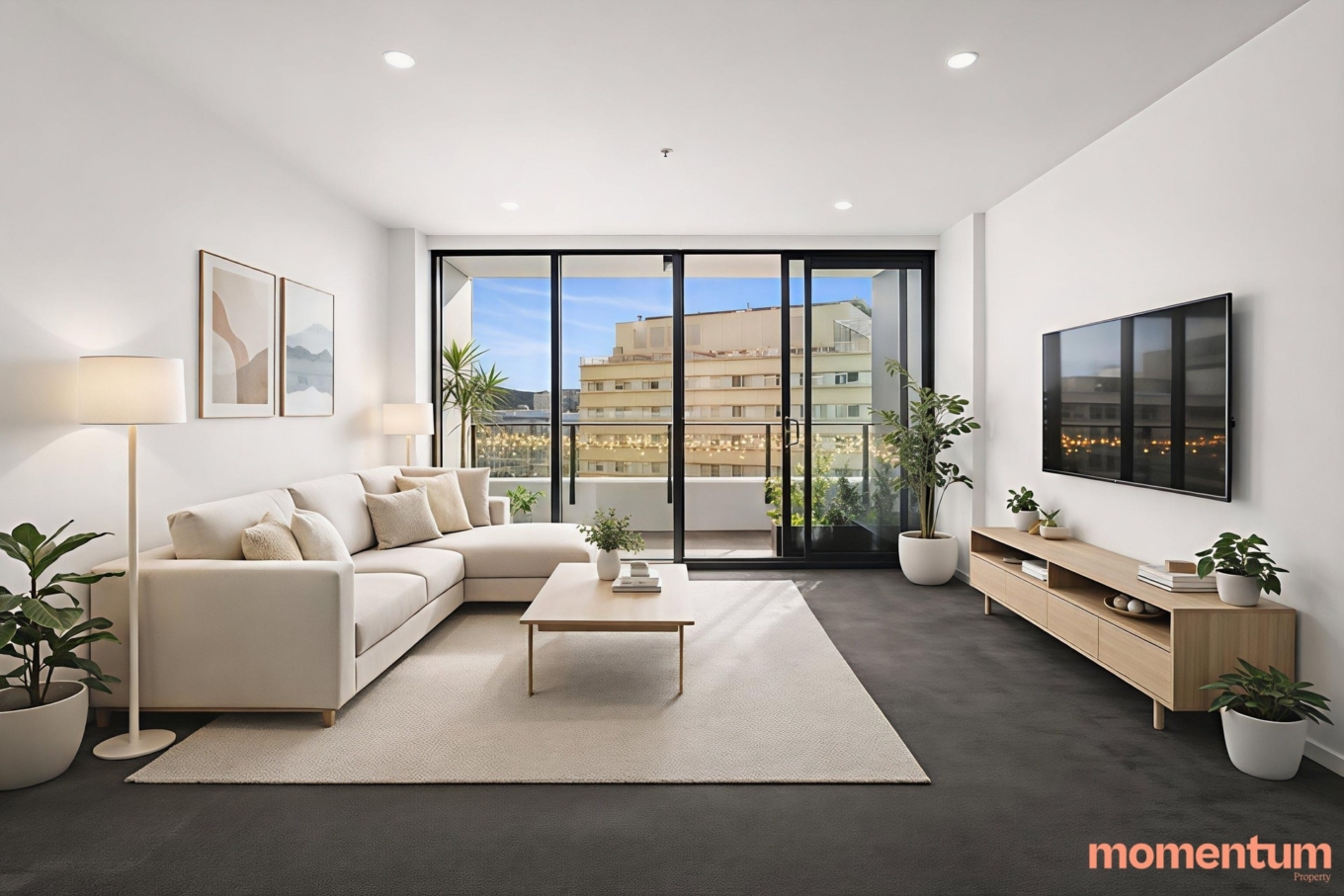 – Light‑filled open‑plan living with soft‑feel carpet to living and bedroom