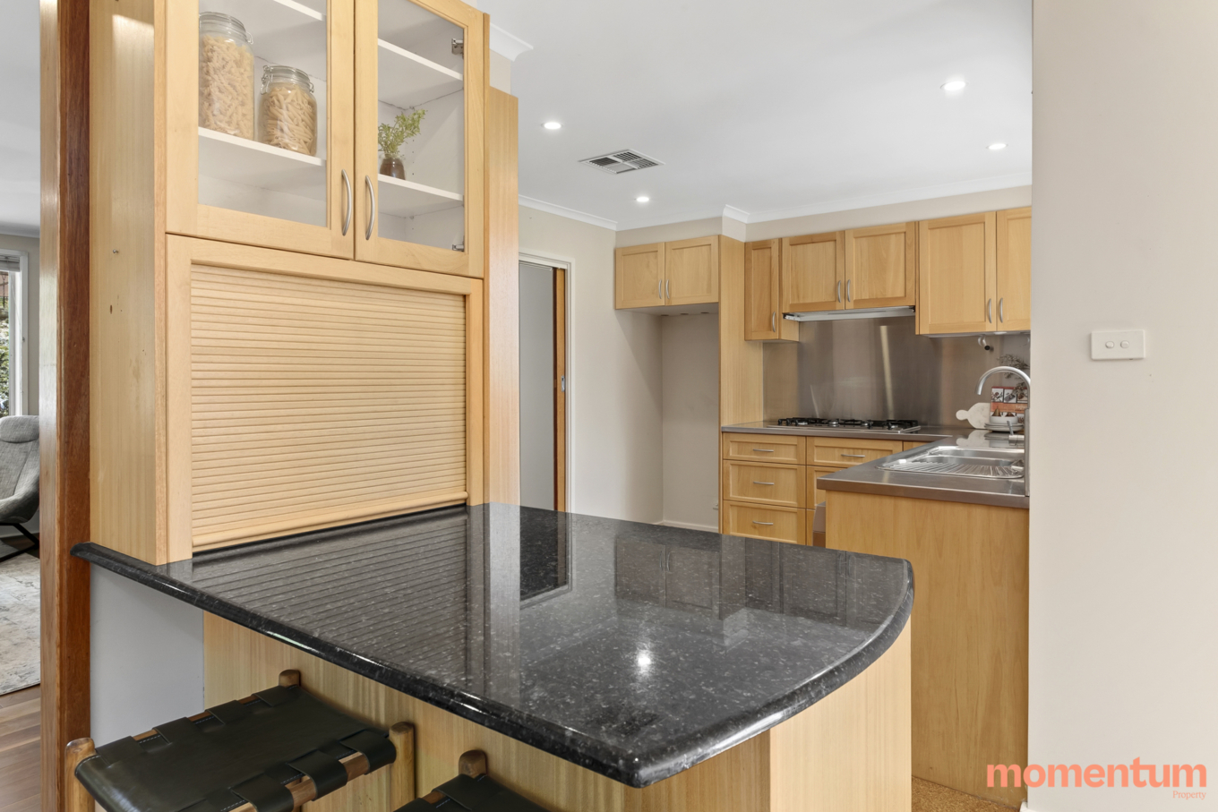 The timber and granite kitchen is functional, while generous living spaces flow out to outdoor areas with views to the Brindabella’s, ideal for future alfresco upgrades or family get-togethers.