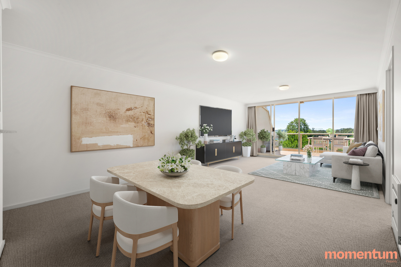 The heart of this home is its expansive open-plan living and dining area. Flooded with natural light, creating a welcoming atmosphere thanks to extensive floor-to-ceiling windows and glass doors. This space seamlessly extends to a large balcony, creating the perfect space to relax or entertain. The elegant kitchen is a culinary dream, equipped with stone bench-tops and new stainless steel appliances, designed to streamline and enhance your cooking skills.