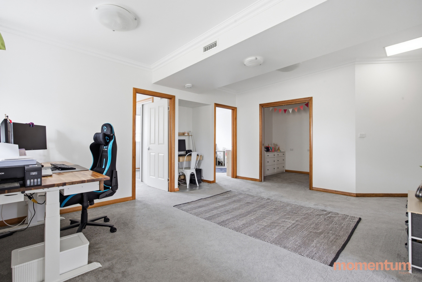 Upstairs, a versatile second living area offers an additional retreat, ideal for a private lounge, executive home office or children’s breakaway space. Accommodation comprises three well-proportioned bedrooms with built-in robes, while the master suite enjoys a walk-in robe, elegant ensuite and large balcony. You can also take advantage of the added room that could be used as accommodation, extra kids space or added storage. The main bathroom is finished with a full-size bathtub and separate shower, complemented by a guest powder room on the lower level.
