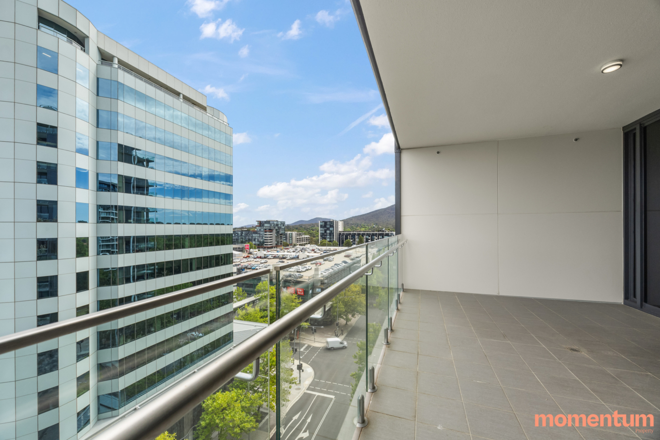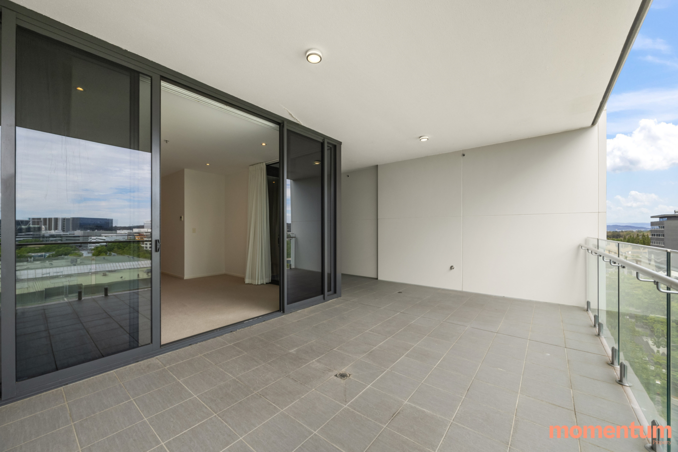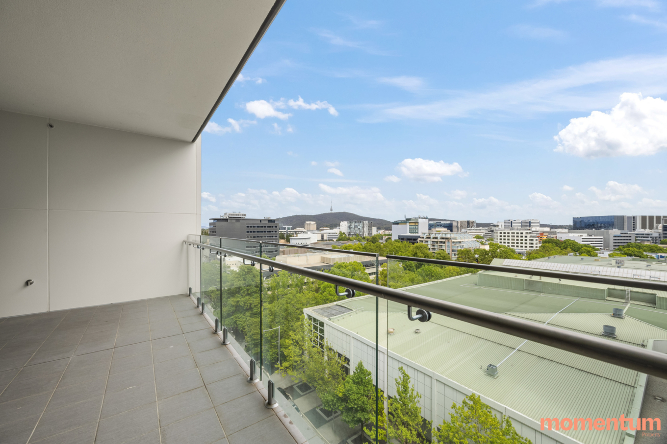 Large Private Balcony: Large balcony space with views of the bustling city skyline, Black mountain and Telstra Tower